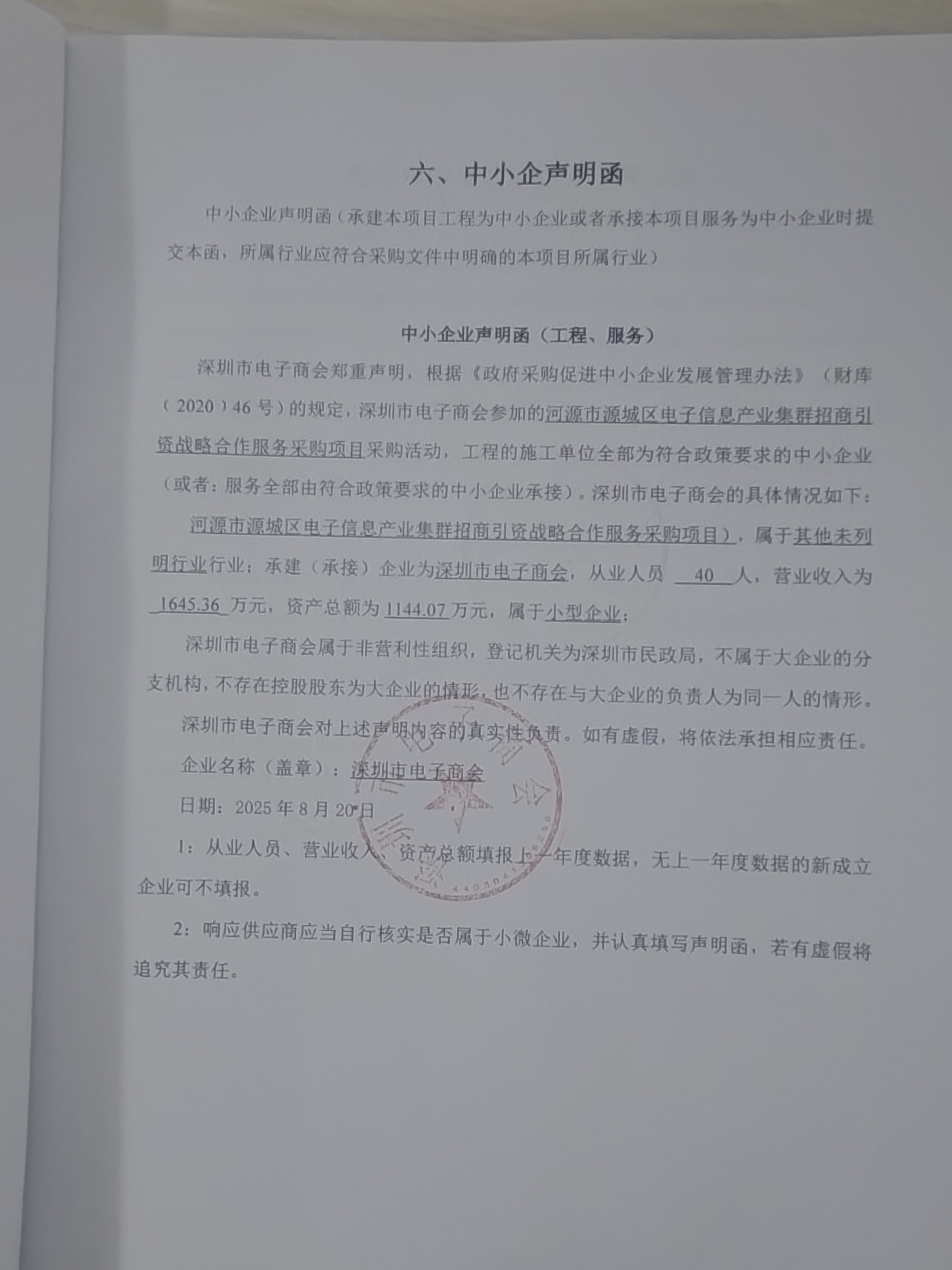 中小企業(yè)聲明函