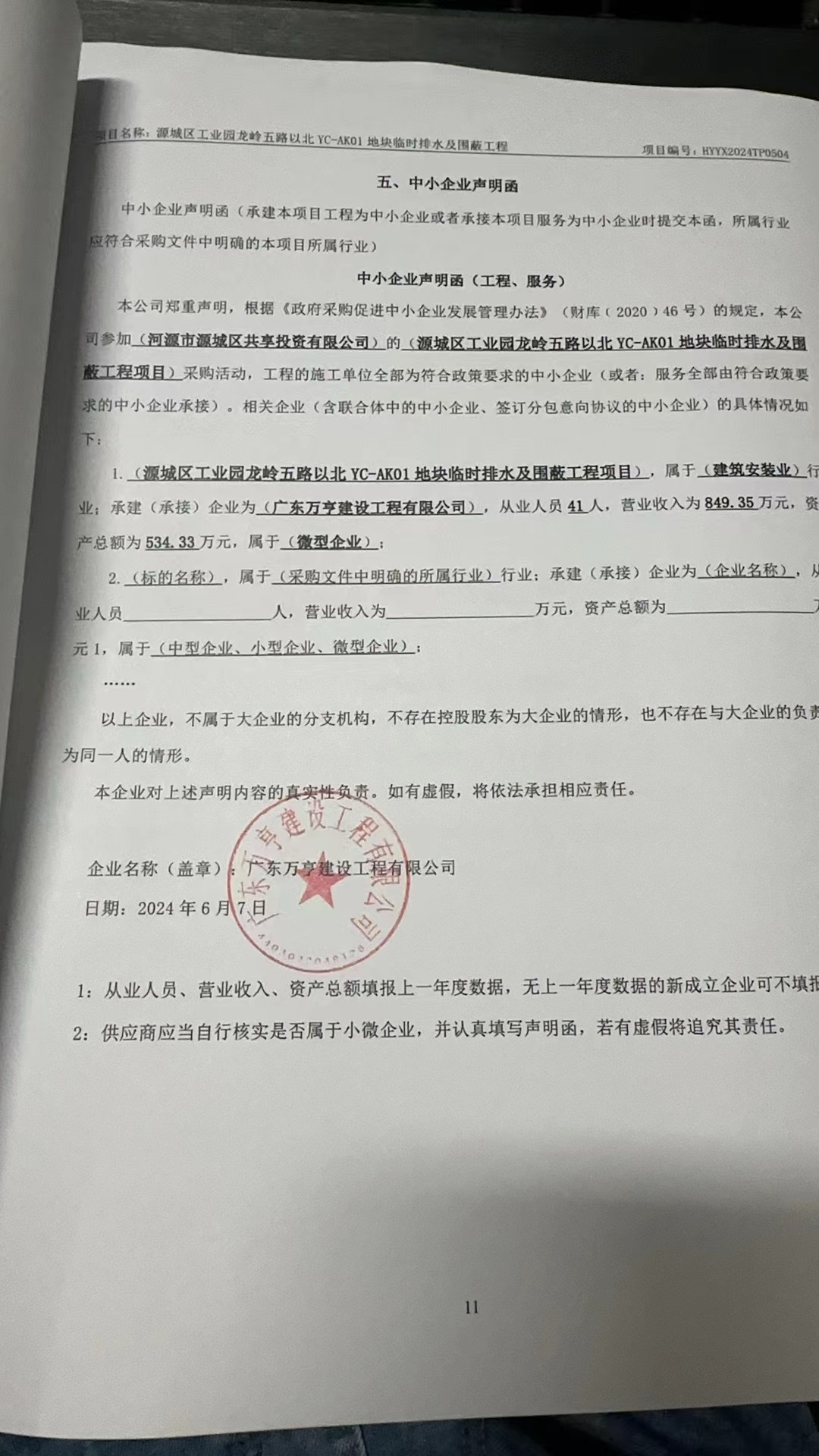 源城區(qū)工業(yè)園龍嶺五路以北YC-AK01地塊臨時排水及圍蔽工程中標(biāo)(成交)結(jié)果公告